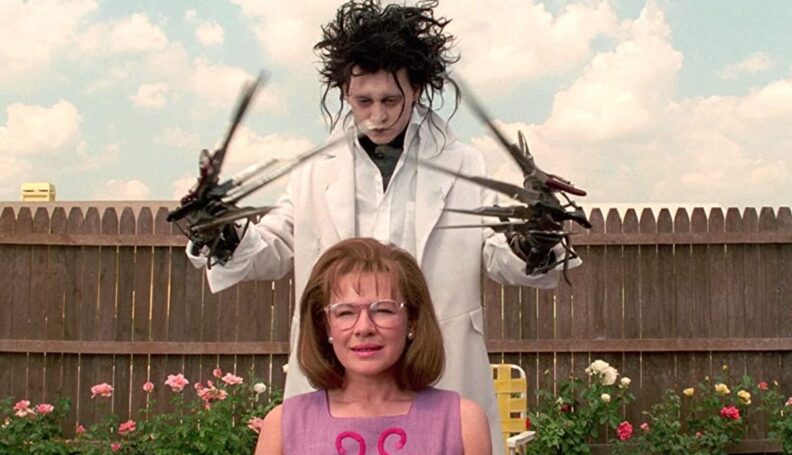 אחד הסרטים המקסימים של שנות התשעים שקנה לו מעמד של קלאסיקה מודרנית. אדוארד הוא יצירתו המופלאה (והלא גמורה) של ממציא בודד המתגורר בטירה מבודדת. מותו של הממציא מותיר את אדוארד עם ידיים עשויות ממספרים חדות. אשת מכירות אדיבה הנקלעת לטירה מחליטה לאמץ את היצור המשונה, וזה עד מהרה הופך ללהיט בקרב נשות העיירה. אבל לא כולם מוכנים לקבל את השונה. סרט מלא דימיון, הומור, עוצמה ויזואלית ולב שמתפקע מרגש.
